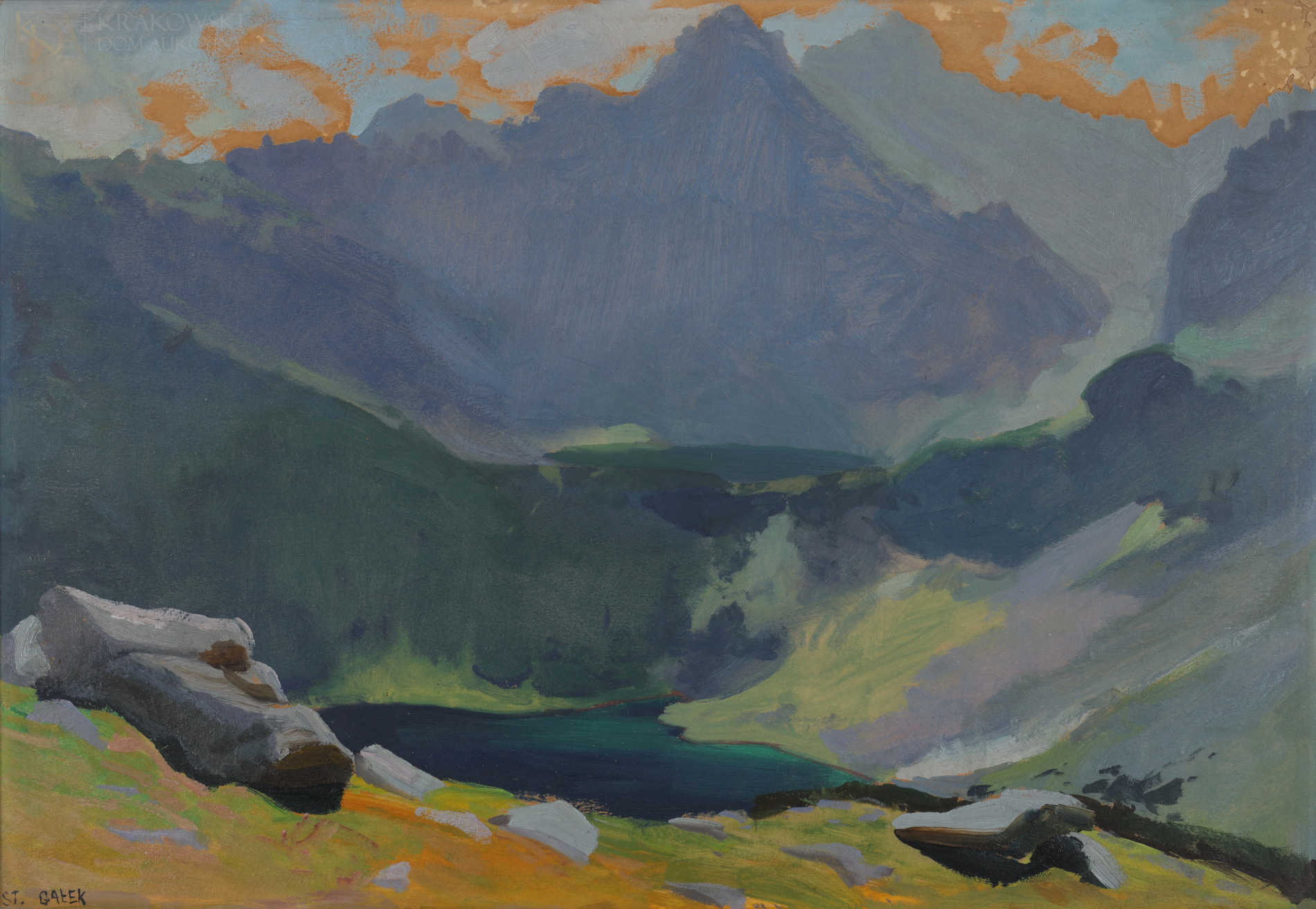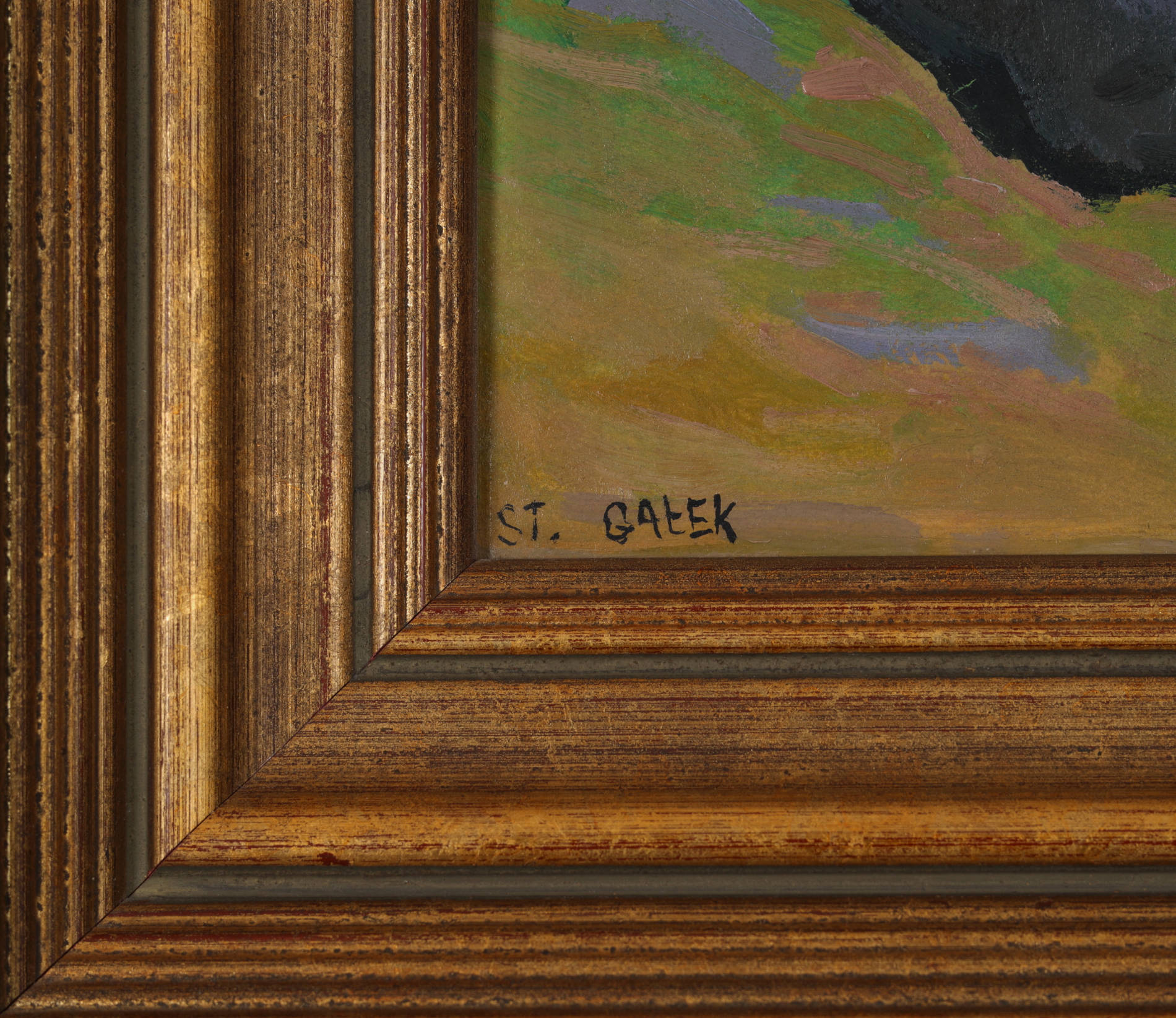 | Sygnowany l.d.: "ST. GAŁEK" Opisany na odwrocie: "St Gałek" P.g. widoczny ubytek podłoża. | |