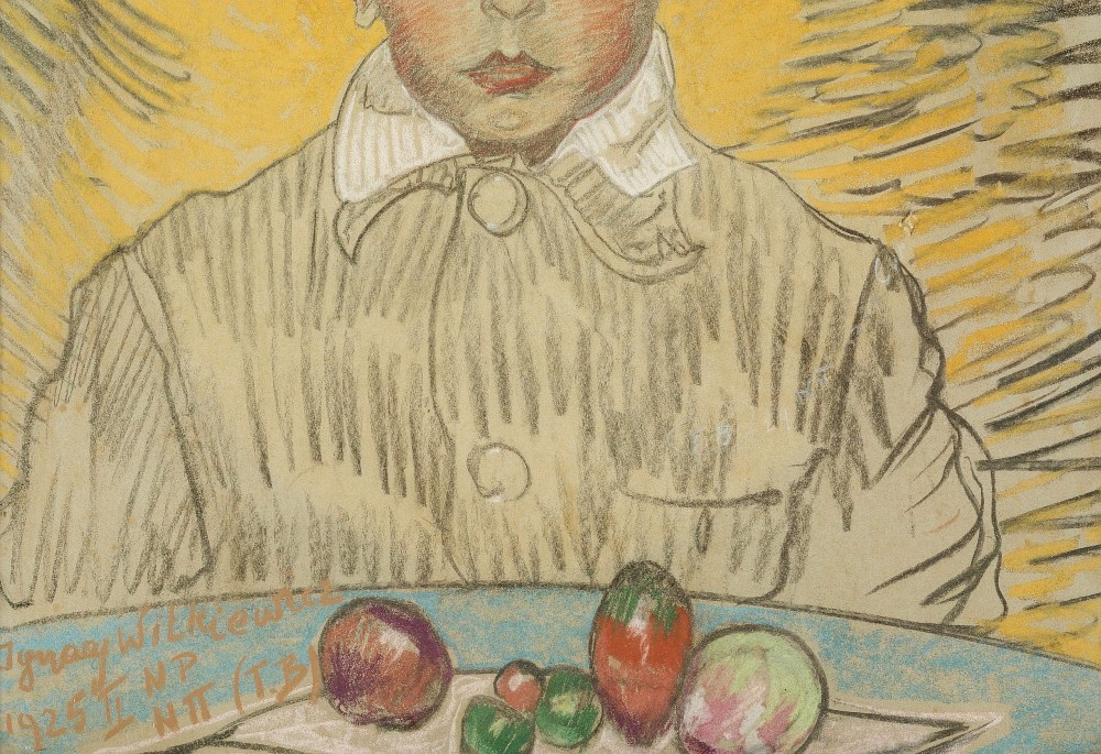 W 1925 roku Stanisław Ignacy Witkiewicz założył jednoosobową Firmę Portretową "S. I. Witkiewicz". W ciągu czternastu lat wykonał kilka tysięcy portretów. Jego klientami były znane postaci ze świata sztuki, literatury i muzyki. Firma portretowa działała według specyficznych warunków ustalonych w regulaminie. Artysta wyróżnił w nim siedem typów portretów, które dowolnie ze sobą łączył. Warto zaznaczyć, że artysta nie zawsze przyjmował zlecenie mówiąc, że nie widzi powodów wykonania portretu. Artysta tworząc prezentowany portret widział bardzo jasno powód wykonania dzieła. Stworzony w 1932 roku pastel artysta zaliczył do typu B+E. Grupa ta jest szczególna gdyż była zarezerwowana dla dzieci oraz dla osób, które były dla artysty wyjątkowo atrakcyjne.