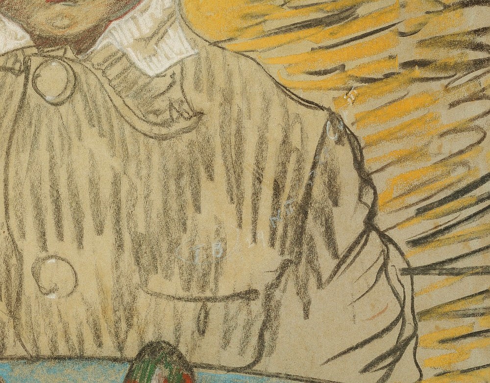 Witkacy chętnie dzielił się informacją, pod wpływem czego był kiedy tworzył lub od czego stronił w danej chwili. W prawym dolnym rogu znajduje się skrót "NTT5m" który oznacza, że artysta nie zażywał żadnych środków odurzających 5 miesięcy, natomiast "NP 60, 61, 63" jest określeniem ilości dni w których nie palił. Praca jest oprawiona w starą oryginalną ramę.