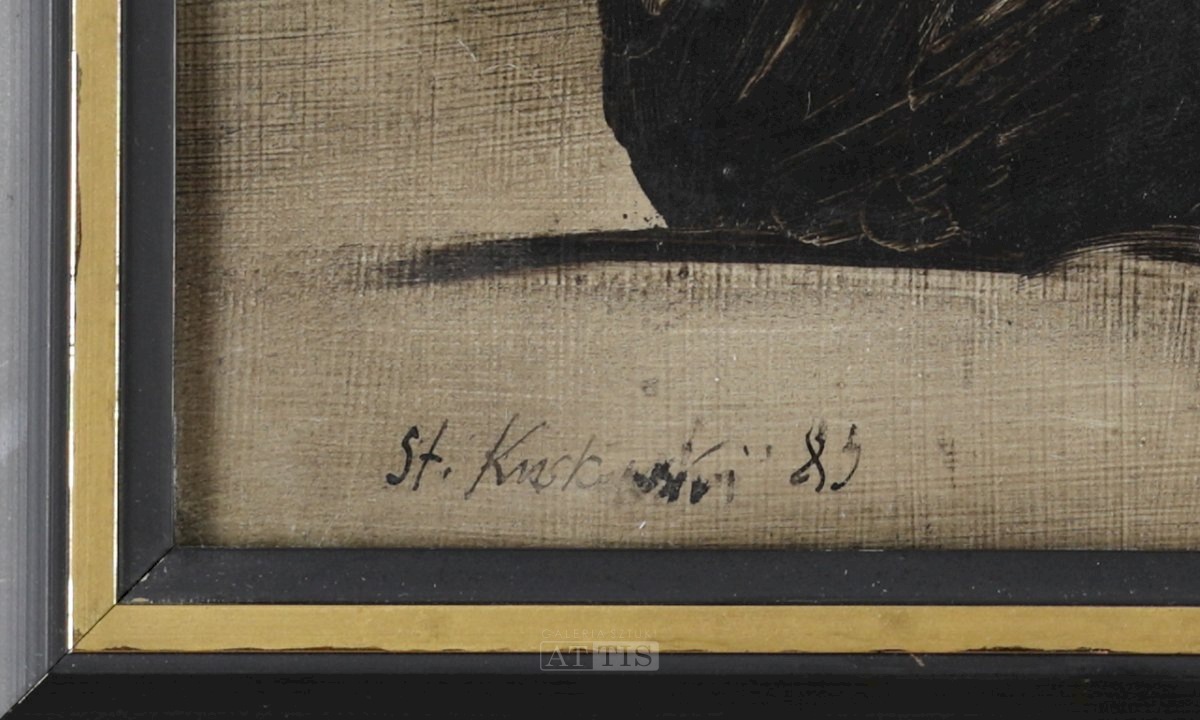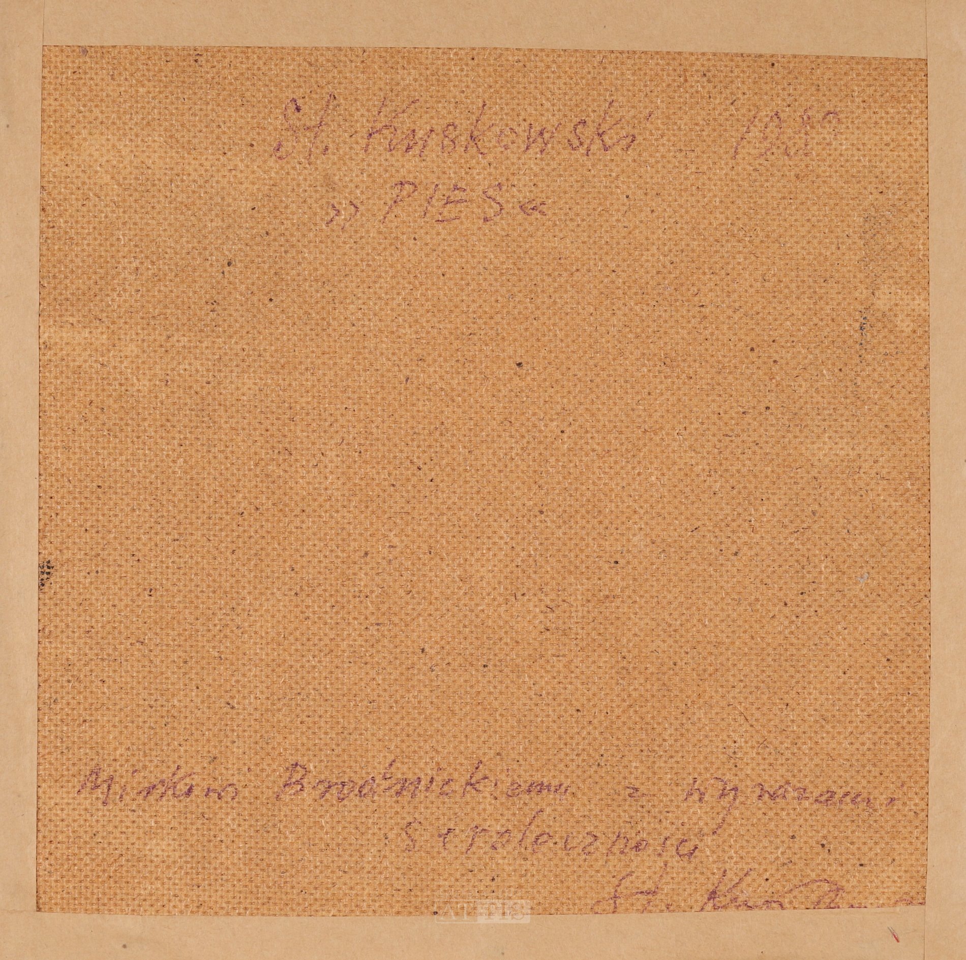 | Sygnowany i datowany l.d.: "St. Kuskowski 83" Opisany na odwrocie: "St. Kuskowski 1983 | »PIES«" Na odwrocie dedykacja autorska. | |
