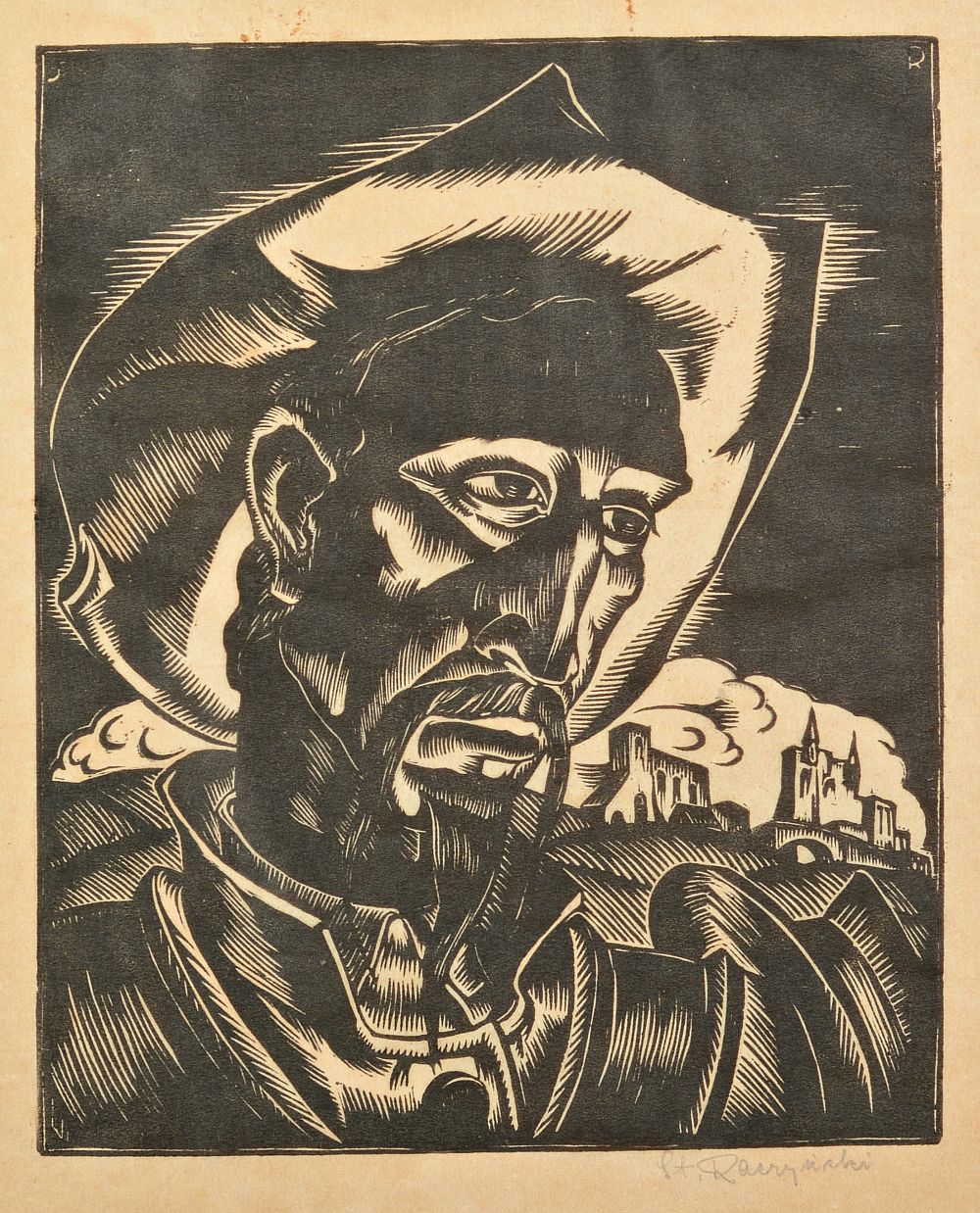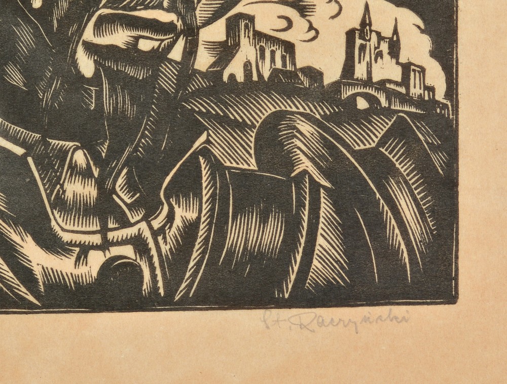 Stanisław Raczyński urodził się w 1903 roku w Wadowicach, zmarł w 1982 roku w Krakowie. Studiował malarstwo w Akademii Sztuk Pięknych w Krakowie u Ignacego Pieńkowskiego, Teodora Axentowicza i Wojciecha Weissa oraz grafikę u Jana Wojnarskiego. Dyplom obronił w 1926 roku. W latach 1927-1928 pracował jako w scenograf w Teatrze Popularnym w Krakowie, a przez następna dwa lata w Teatrze Wielkim w Poznaniu. W 1930 roku wyjechał do Paryża na stypendium Ministerstwa Wyznań Religijnych i Oświecenia Publicznego. Naukę uzupełniał jeszcze we Włoszech. Artysta zajmował się grafiką, reklamą i ilustracją. Wykonał m.in. ilustracje do Procesu Franza Kafki i Życia Gargantui i Pantagruela Françoisa Rabelaisa. Wydał też dwie teki drzeworytów z przedstawieniami zabytków polskiej architektury.