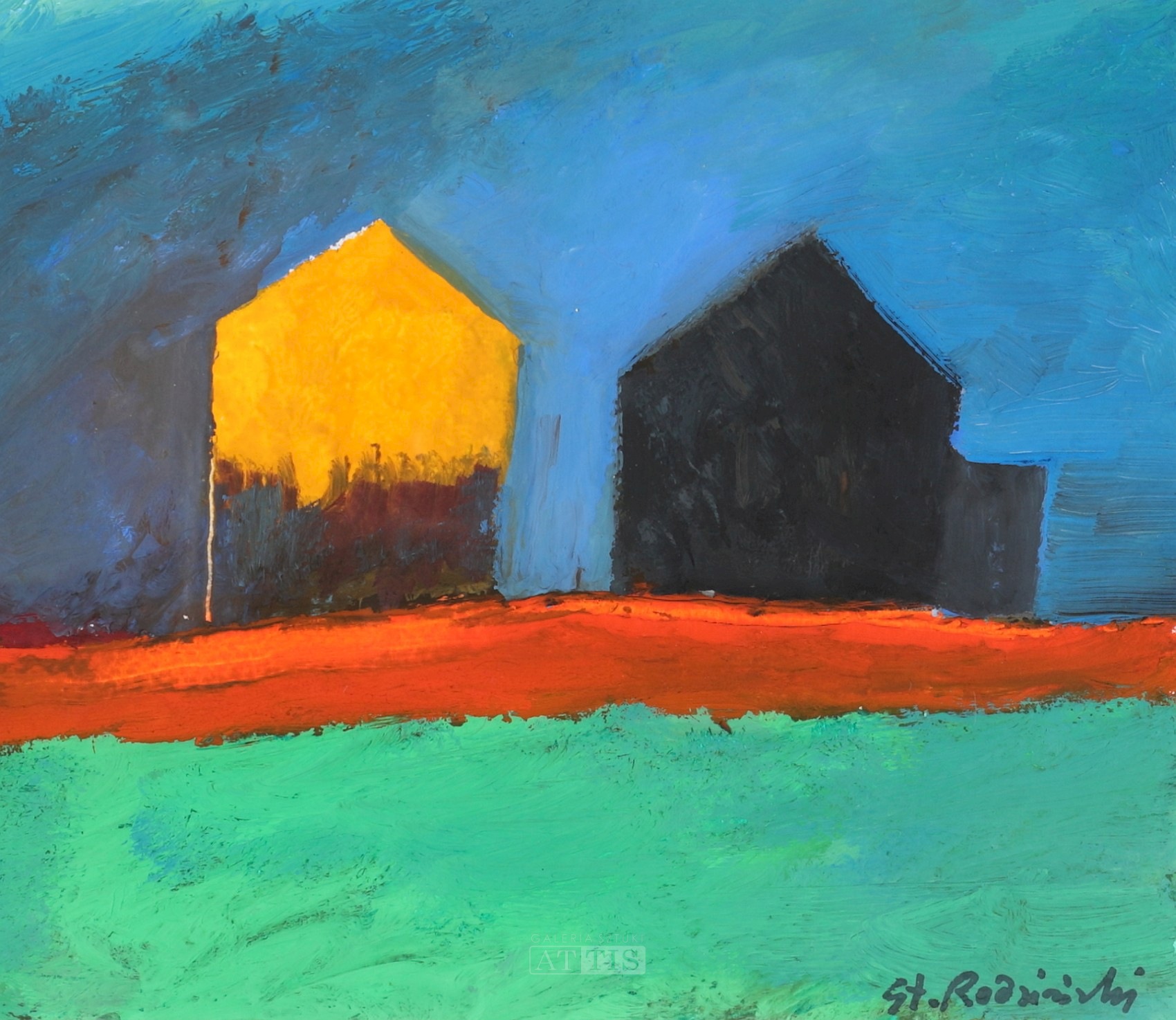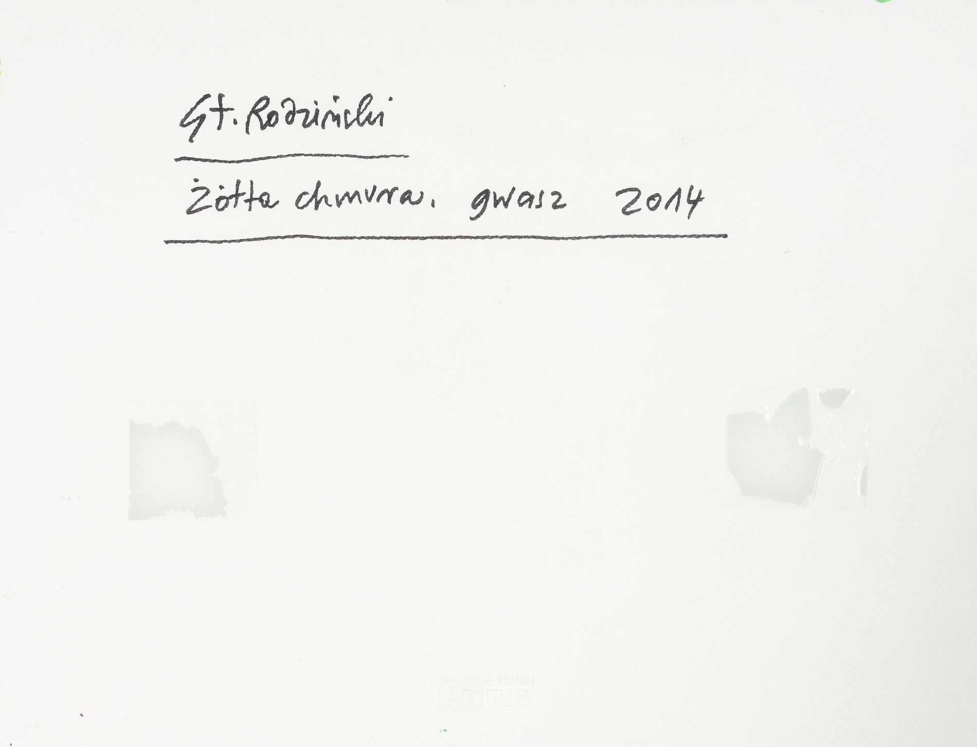 | Sygnowany p.d.: "St. Rodziński" Opisany na odwrocie: "St. Rodziński | Żółta chmura, gwasz 2014" | |