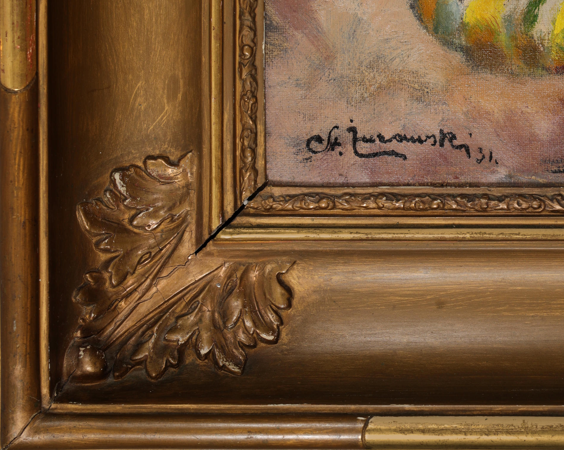 | Sygnowany i datowany l.d.: "St. Żurawski 31." Na odwrocie metka Towarzystwa Przyjaciół Sztuk Pięknych we Lwowie z 1931 roku oraz metka Instytutu Propagandy Sztuki. Na blejtramie pieczątki Fabryki farb i przyborów malarskich Iskra & Karmański. | |