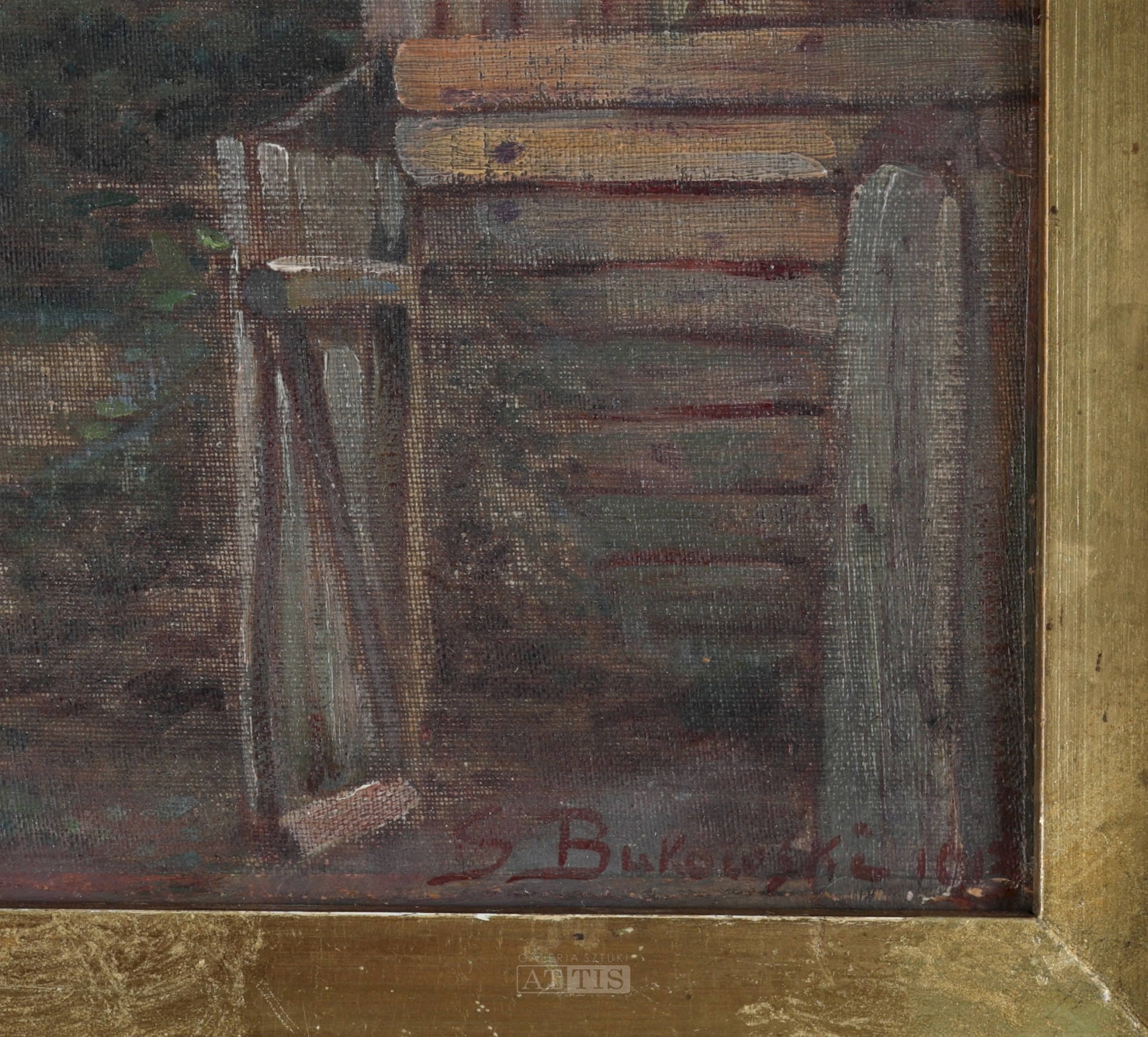 | Sygnowany i datowany p.d.: "S Bukowski 1913" Widoczne ubytki malatury przy górnej krawędzi obrazu (śr.g.). | |
