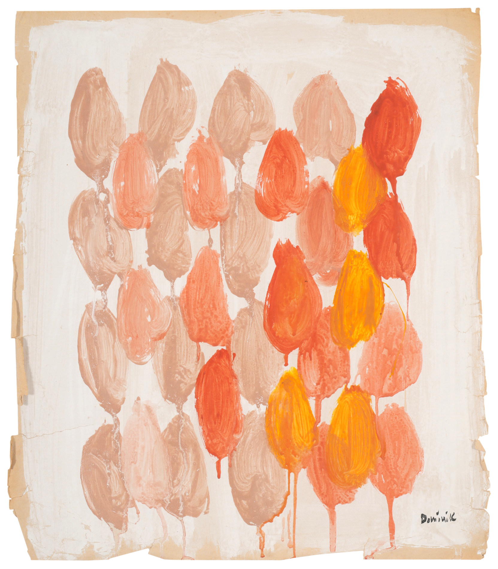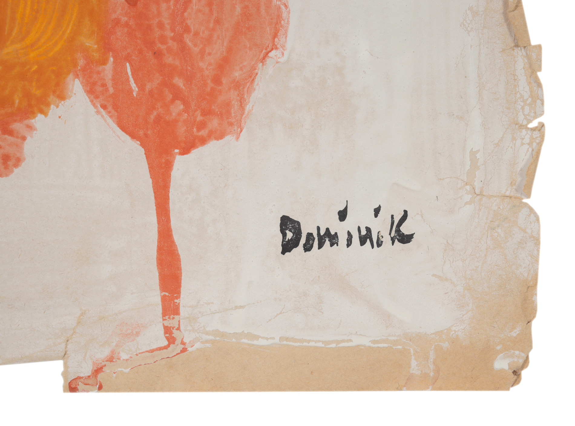 | Sygnowany p.d.: "Dominik" Na odwrocie oprawy potwierdzenie autentyczności obrazu podpisane przez syna artysty, Tomasza Dominika. Widoczne naderwanie papieru l.d. Przy krawędziach widoczne drobne naderwania papieru. | |