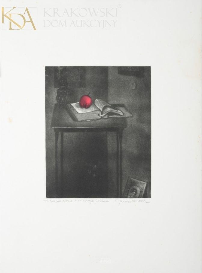 | Sygnowana i datowana ołówkiem p.d.: "T. Jackowski 1978." Opisana ołówkiem l.d.: "E/A Martwa natura z czerwonym jabłkiem" | |