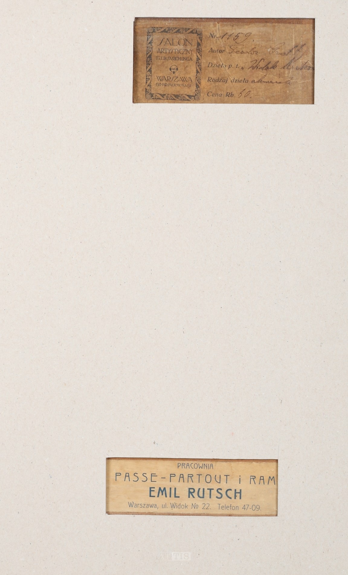 | Sygnowany i datowany l.d.: "Teod. Grott | 911" Na odwrocie metka Salonu Artystycznego Feliksa Richlinga w Warszawie oraz metka warszawskiej pracowni oprawy Emila Rutscha. | |