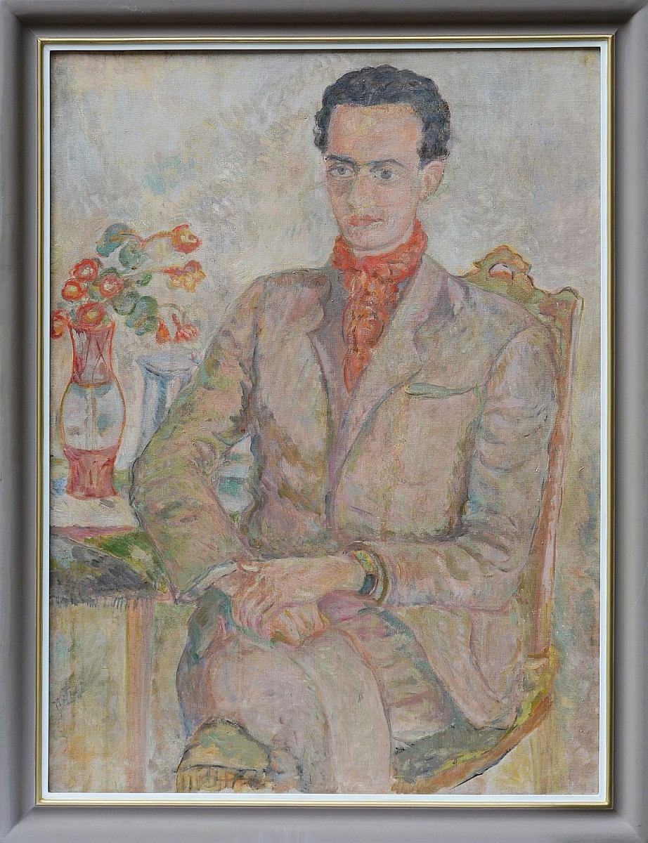 | Sygnowany l.d.: "Tytus | Czyżewski" Obraz przez wiele lat znajdował się w depozycie w Muzeum Sztuki w Łodzi. Praca wystawiana m.in.: Wystawa indywidualna, Poznań 1974, poz. 68; Wystawa indywidualna, Festiwal Sztuki, CBWA, Sopot 1956. Obraz Tytusa Czyżewskiego "Portret młodego mężczyzny" cechuje harmonia i wysmakowana elegancja, zarówno kompozycji jak i środków malarskich. Model przedstawiony jest realistycznie, tylko w niewielkich detalach (wazon) pobrzmiewają kubistyczne fascynacje artysty z czasów, kiedy należał jeszcze do ugrupowania Formistów. Warstwa malarska kładziona jest cienko, niezwykle dynamicznie, krótkimi i wyraźnymi pociągnięciami pędzla. | |
