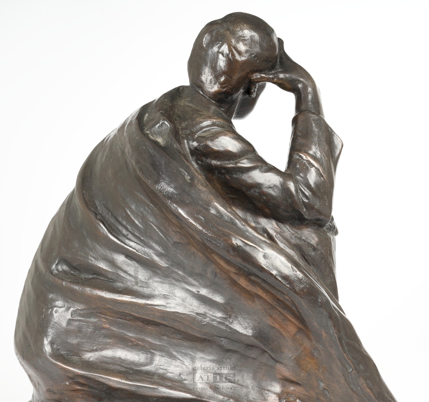 | Sygnowany z tyłu podstawy: "W. Szymanowski" Opisany na podstawie: "4/6 M" Na podstawie inskrypcja z fragmentem Pieśni III poematu Juliusza Słowackiego "Beniowski". Oferowana rzeźba została odlana w edycji sześciu egzemplarzy. Dzieła o podobnych wymiarach znajdują się w zbiorach Muzeum Narodowego w Warszawie, Muzeum Narodowego w Krakowie oraz Muzeum Literatury w Warszawie, w katalogach nie pojawiają się jednak informacje o obecności numeru edycji na podstawie. Więcej o projekcie pomnika Juliusza Słowackiego zob. m.in. Wacław Szymanowski (1859-1930). Katalog wystawy w Muzeum Narodowym w Warszawie, czerwiec-lipiec 1981, oprac. H. Kotkowska-Bareja, Muzeum Narodowe w Warszawie, Warszawa 1981, s. 18-19, 29, 63-64. | |