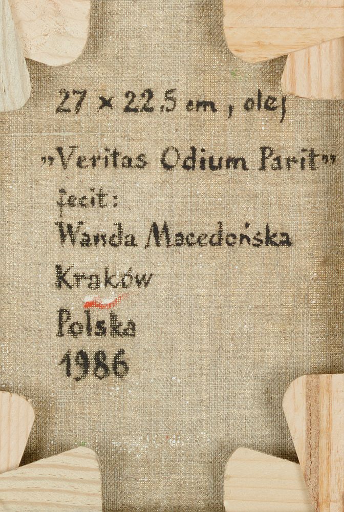 | sygnowany oraz datowany p.g.: "fecit: Wanda 86" Sygnowany oraz opisany na odwrocie. | |