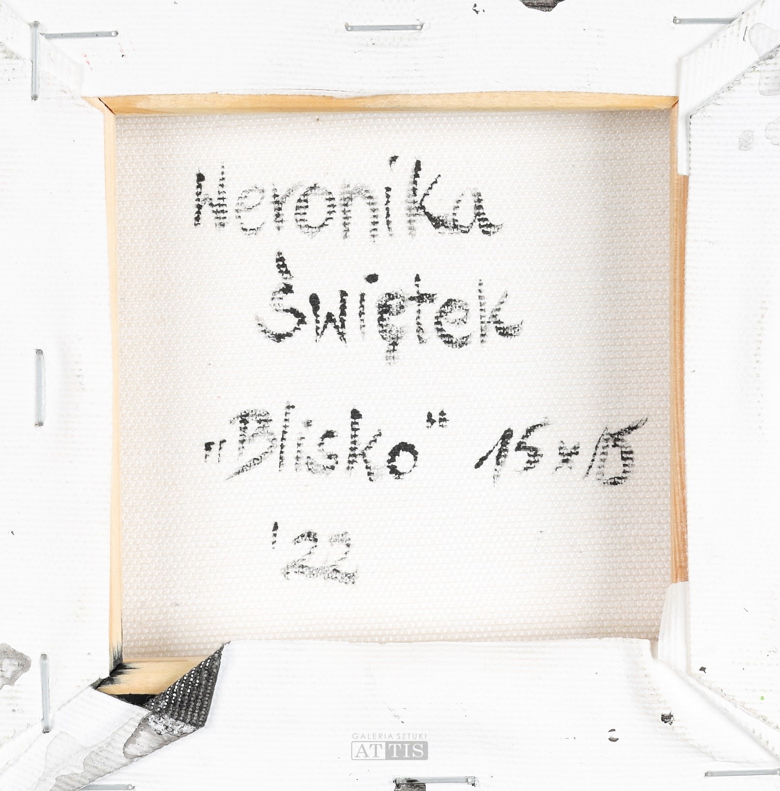 | Sygnowany i opisany na odwrocie: "Weronika | Świętek | Blisko 15 x 15 | 22" | |