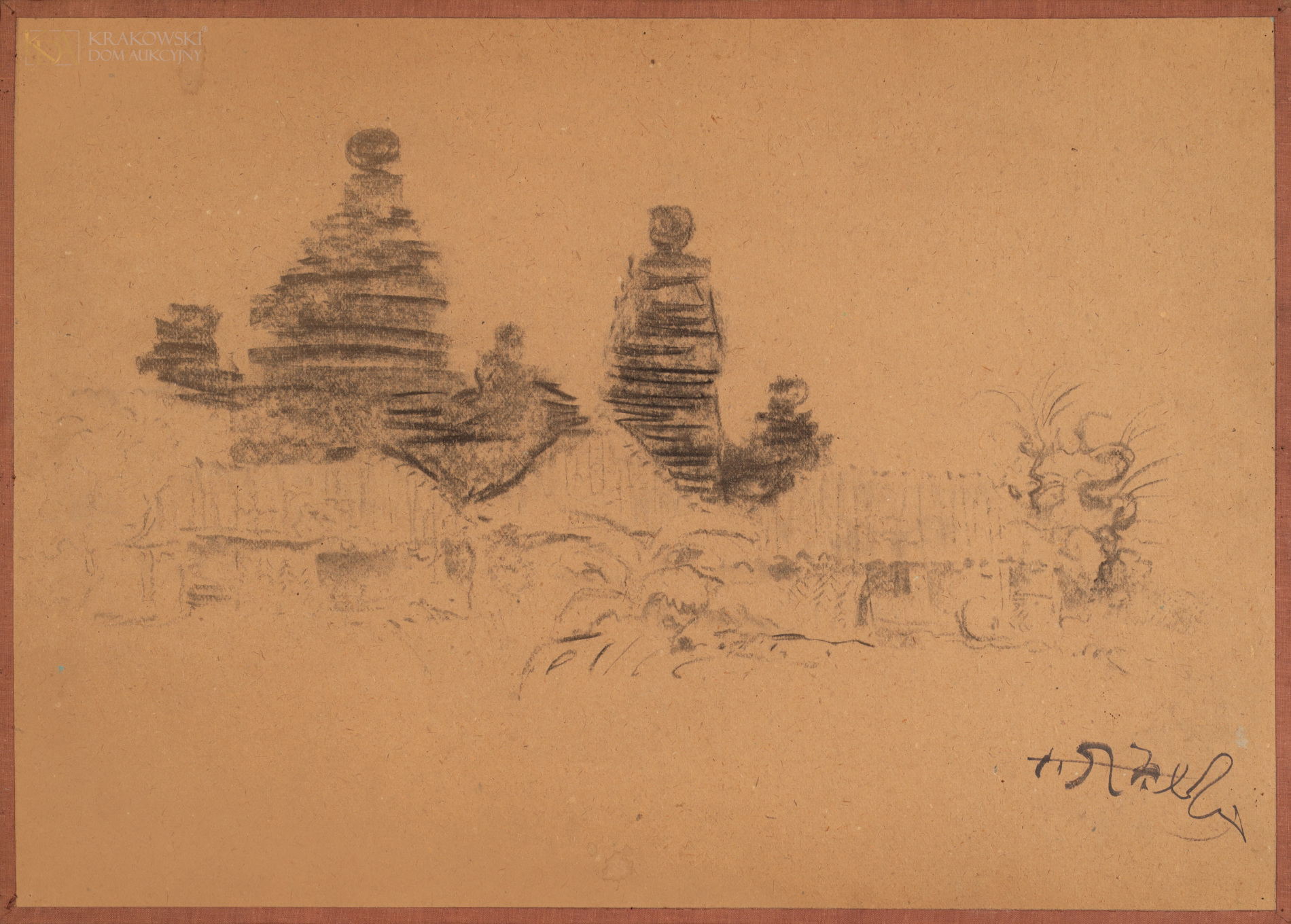 | Technika: | węgiel, papier naklejony na tekturę |