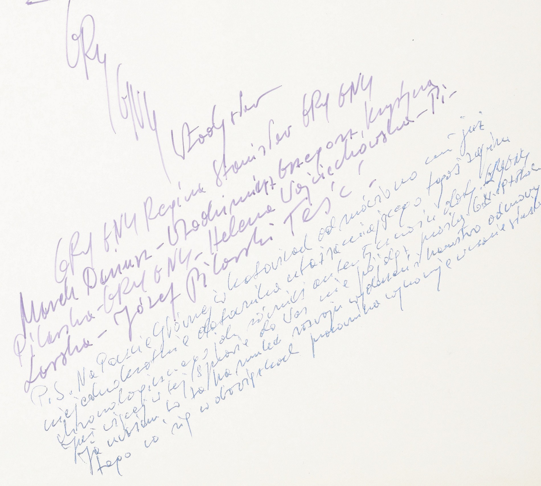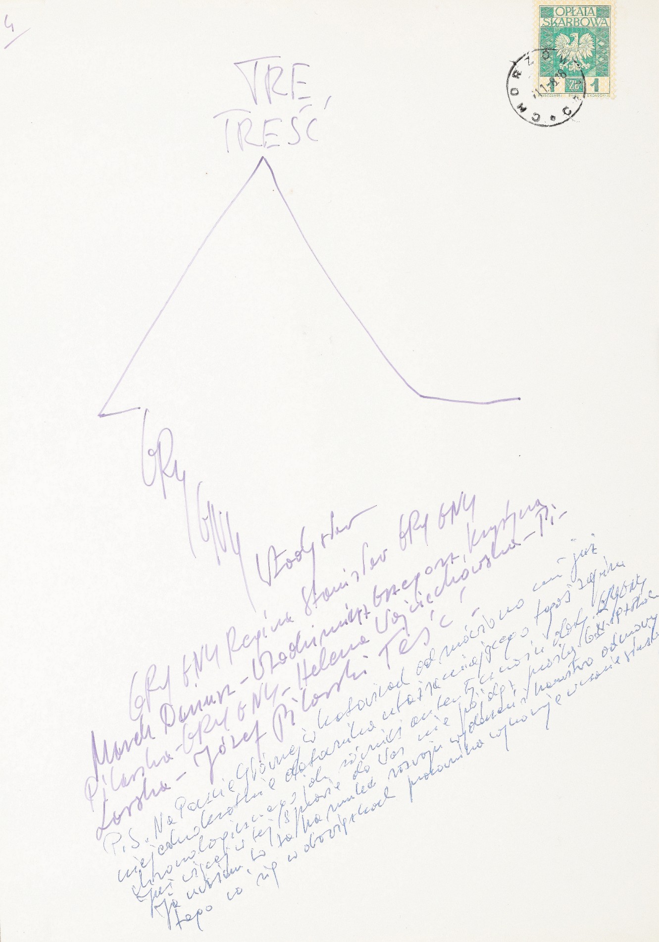 | 1. "Papryka w zupie ugotowana nadaje jej smak fasolki szparagowej" Sygnowany i opisany śr.g. Opisany śr.d. 2. "PS. Na Poczcie Głównej w Katowicach odmówiono mi już niejednokrotnie" Sygnowany i opisany śr.d. Opisany śr.g. | |