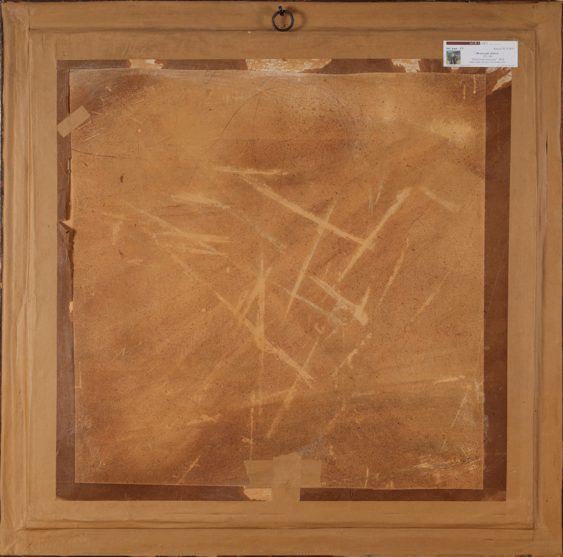 | Sygnowany i datowany ołówkiem p.d.: "WŁADYSŁAW JAROCKI | 1910" W narożnikach widoczne niewielkie sfalowania podłoża (papier jest rozpięty na blejtramie). | |