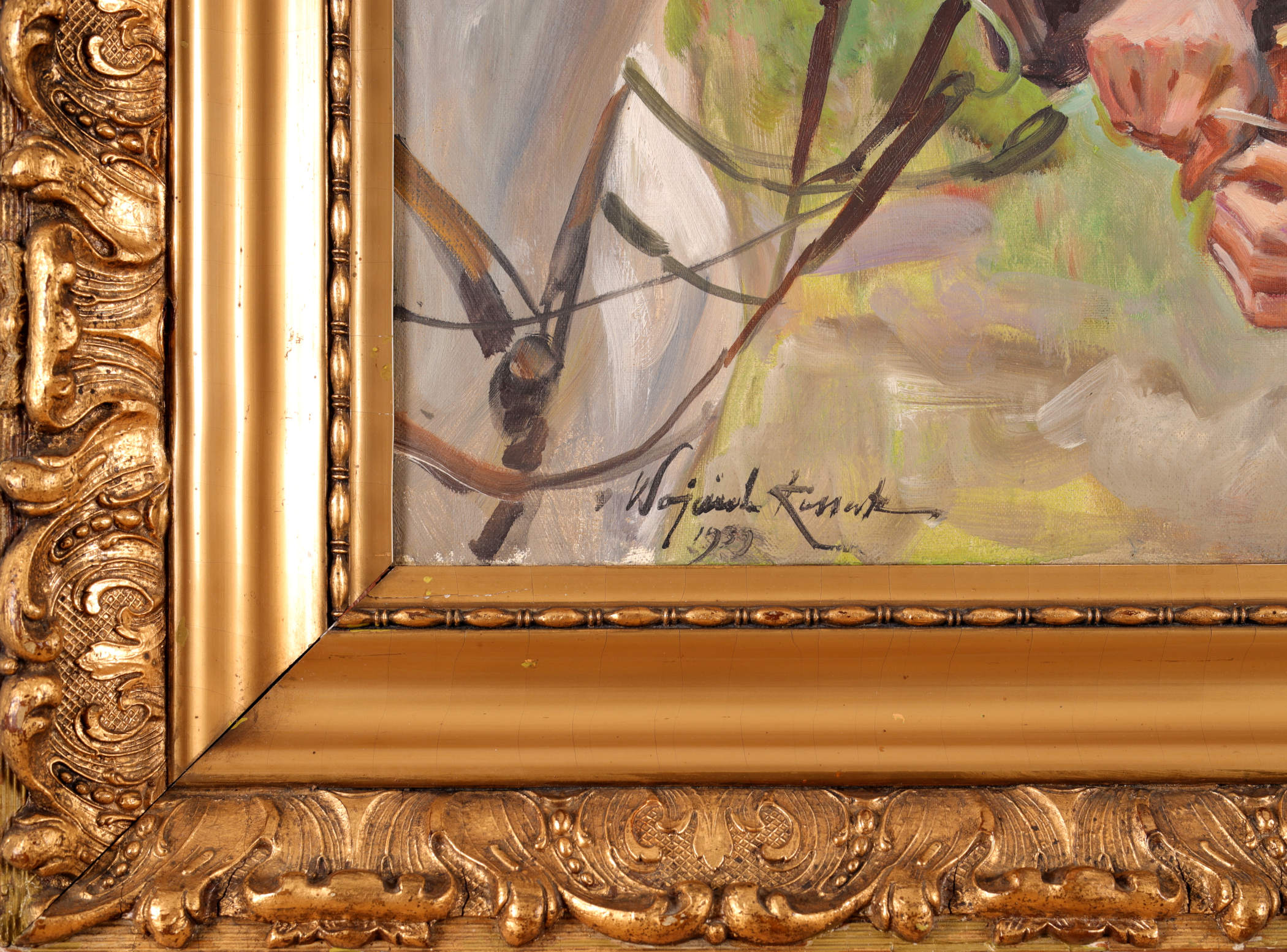 | Sygnowany i datowany l.d.: "Wojciech Kossak | 1939" Na odwrocie pieczęć lakowa z herbem rodu Kossaków. | |