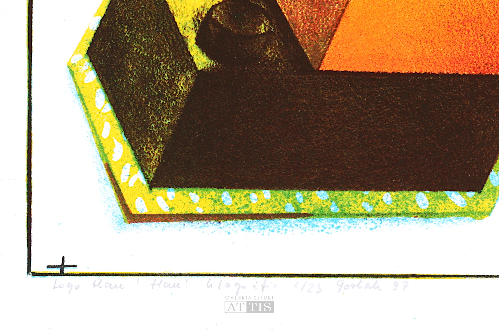 | Sygnowana i datowana ołówkiem l.d.: "Gorlak 97" Opisana ołówkiem l.d.: "Lego Hau! Hau! litografia 7/23" | |