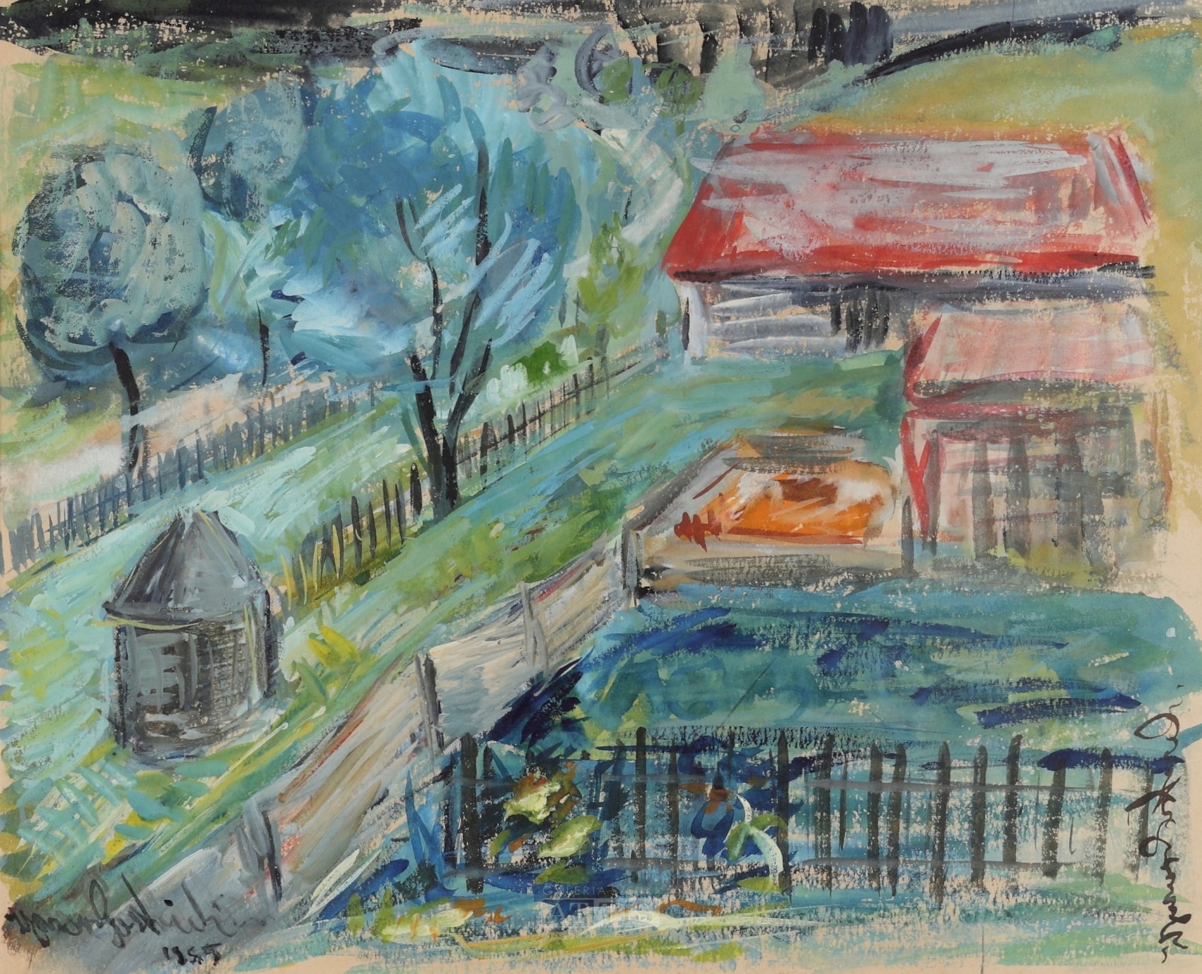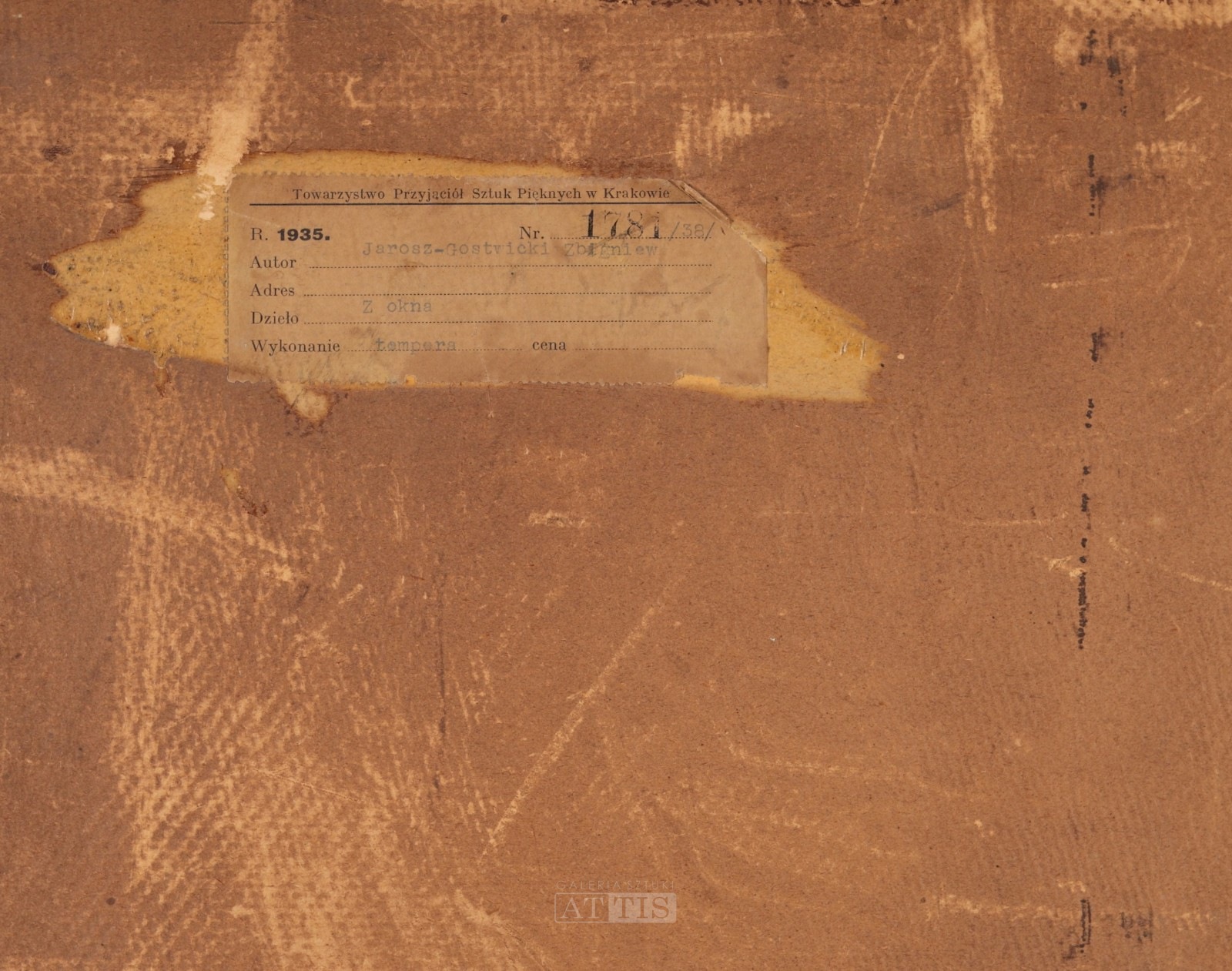 | Sygnowany i datowany l.d.: "Zbigniew Gostwicki | 1955" Sygnowany p.d.: "Zbigniew Gostwicki" Na odwrocie metka z Towarzystwa Przyjaciół Sztuk Pięknych w Krakowie. | |