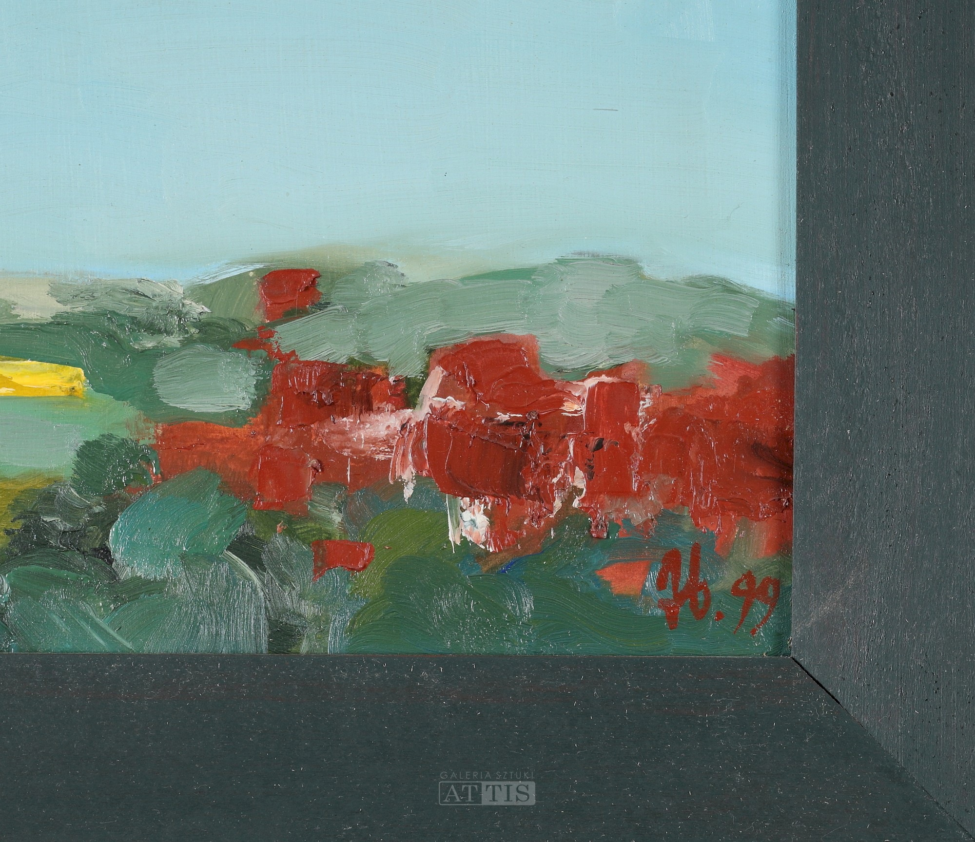 | Sygnowany i datowany p.d.: "Zb.99" Opisany na odwrocie: "Zbylut GRZYWACZ | PEJZAŻ Z PRĄDNIKA I | 1999 | 36 x 33 cm" | |
