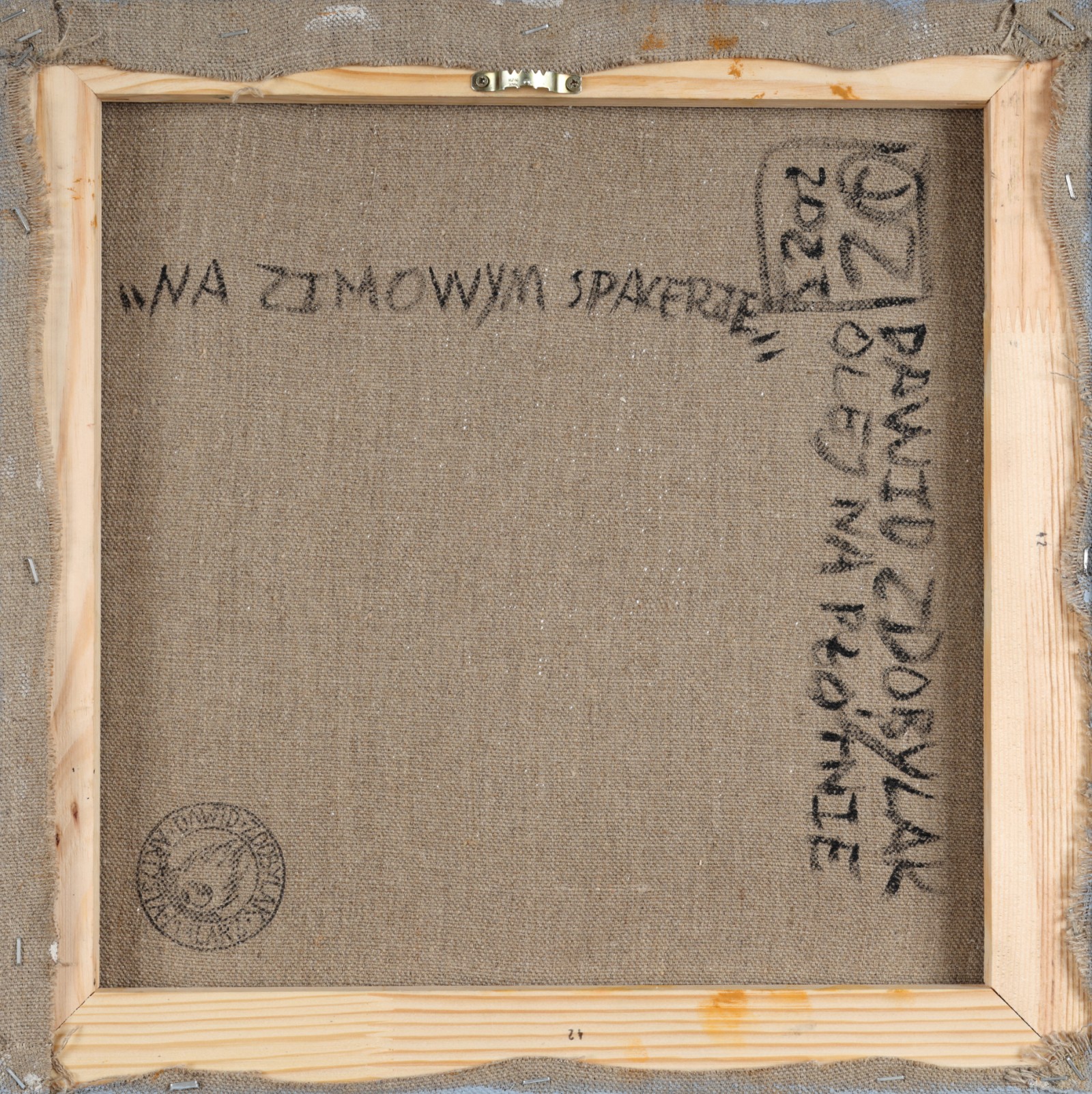 | Sygnowany i opisany na odwrocie: "DZ | 2023"; "DAWID ZDOBYLAK | OLEJ NA PŁÓTNIE"; "NA ZIMOWYM SPACERZE" Na odwrocie pieczątka autorska Dawida Zdobylaka. | |
