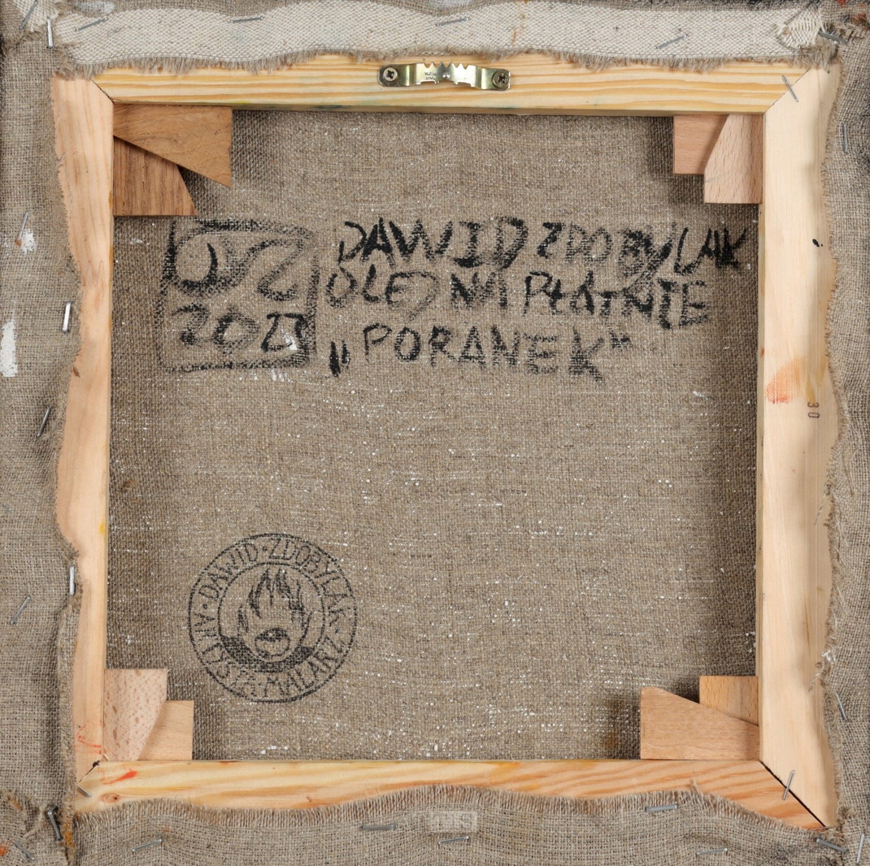 | Sygnowany i opisany na odwrocie: "DZ | 2023"; "DAWID ZDOBYLAK | OLEJ NA PŁÓTNIE | PORANEK" Na odwrocie pieczątka autorska Dawida Zdobylaka. | |