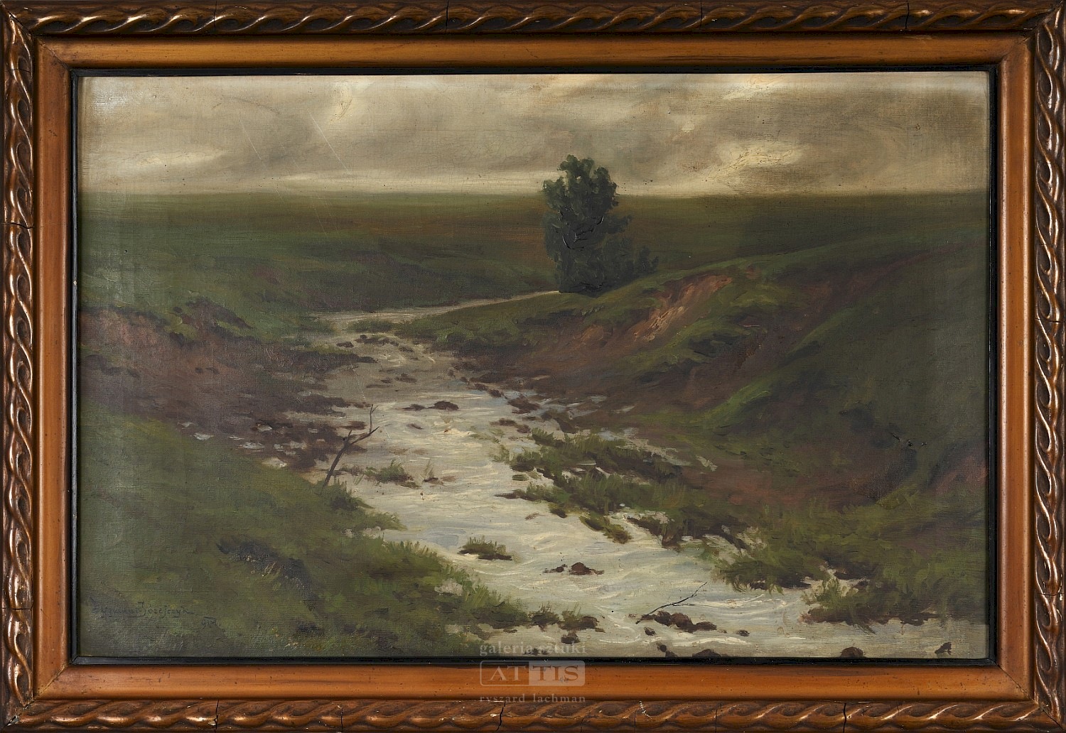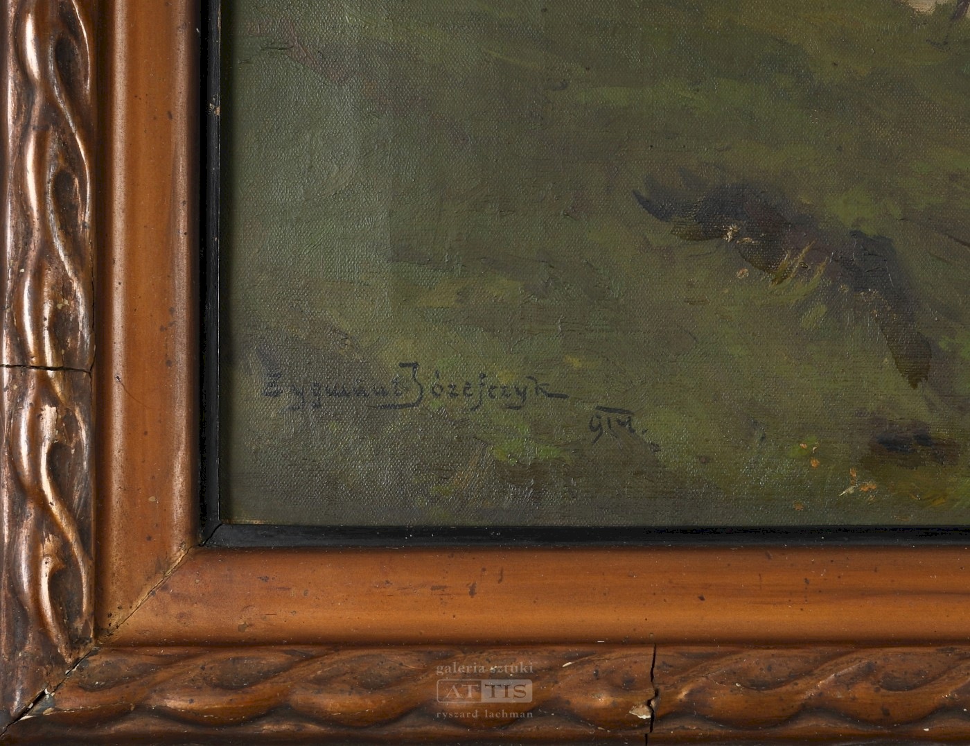 | Sygnowany i datowany l.d.: "Zygmunt Józefczyk | 914" Widoczne zabrudzenie warstwy malarskiej, drobne spękania malatury oraz zarysowania w lewym górnym rogu. | |