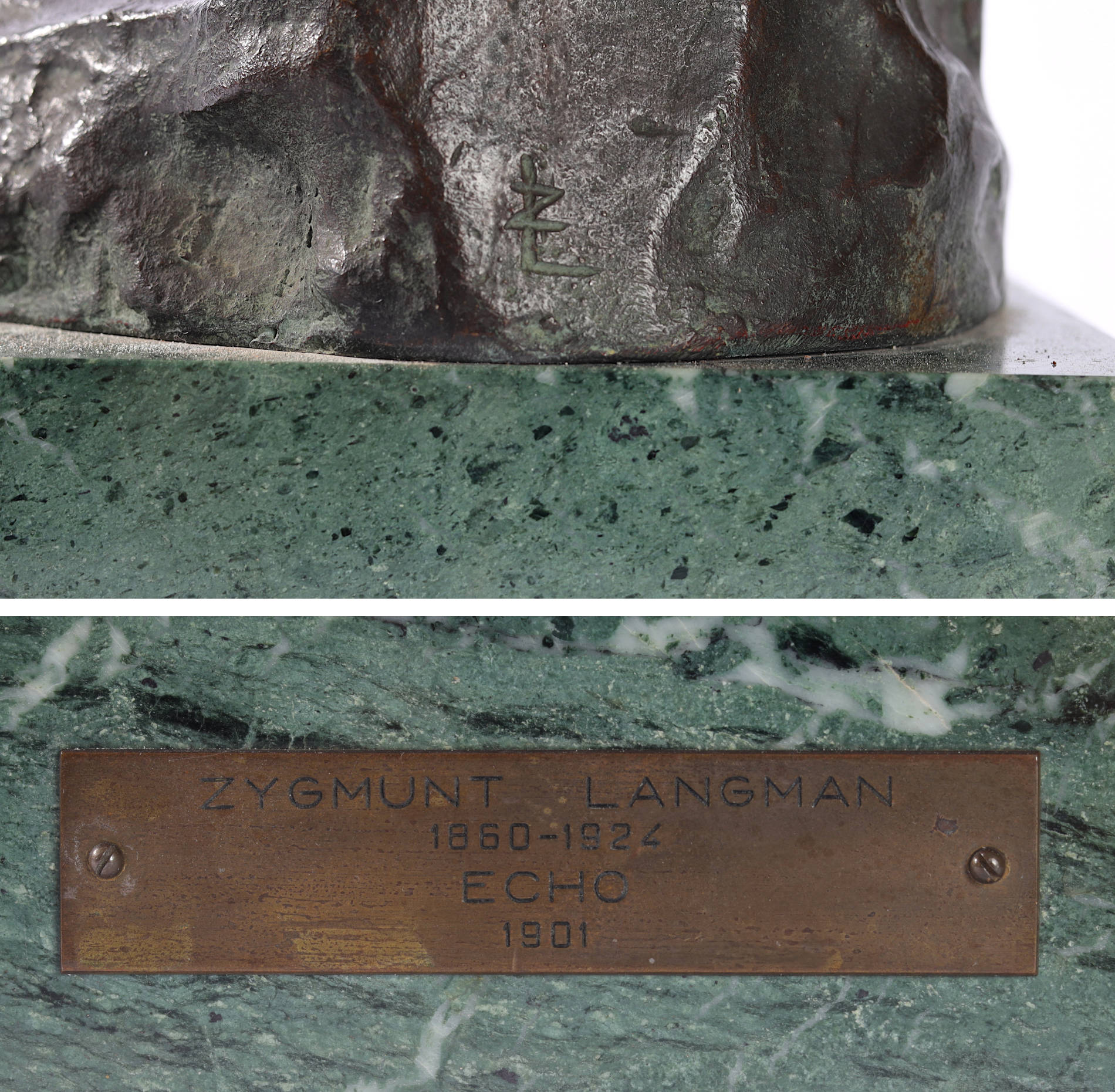 | Sygnowany na tyle figury monogramem "ZL" Opisany na tabliczce na podstawie. PROWENIENCJA: - kolekcja prywatna - dar od Bogusława Langmana, syna artysty. | |
