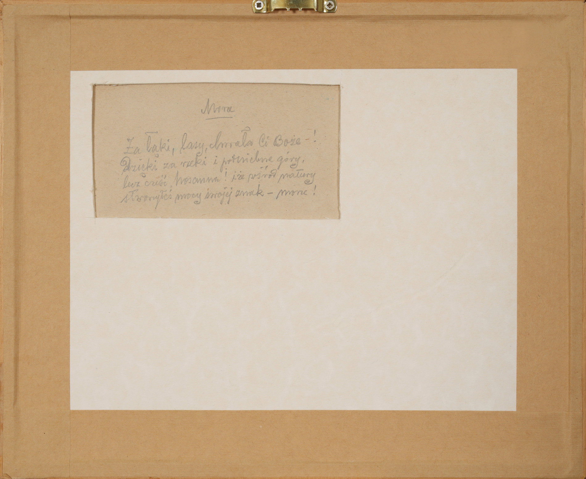| Sygnowany i datowany ołówkiem p.d.: "M.Z. Wierciak | 936." Na odwrocie odręcznie napisany wiersz-modlitwa pt. "Morze". | |